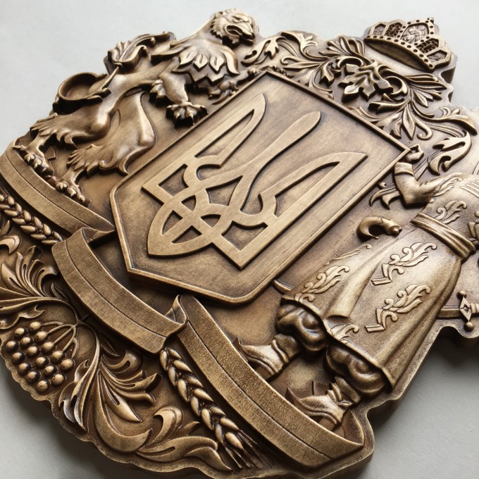 Великий герб України виготовлений із натурального дерева в технології 3D гравірування.